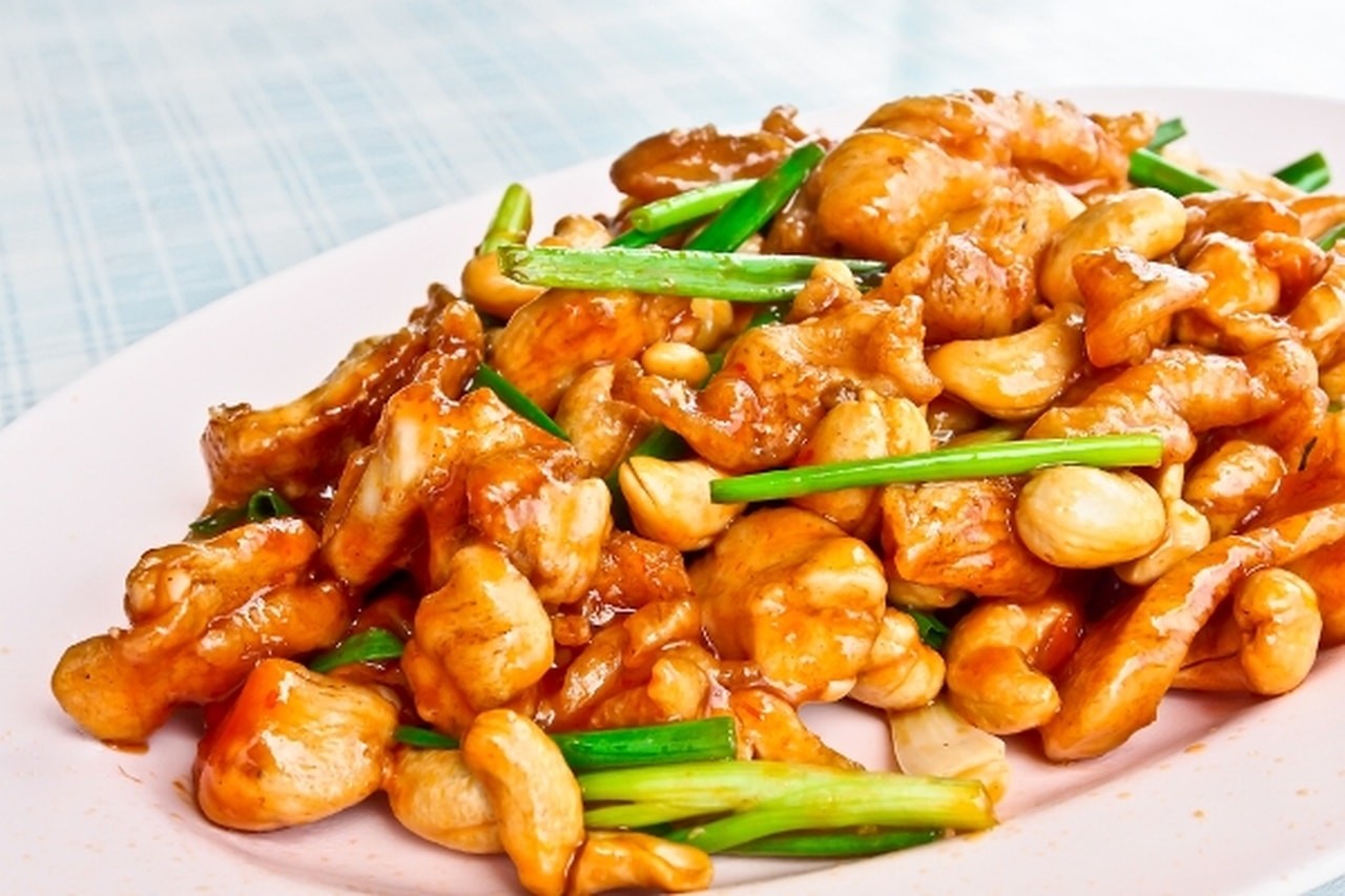 يصب هذا المزيج فوق اللحم والخضار. يحرك الكل جيداً، ويضاف إليه الكاجو المقلي. يقدم الطبق مع الأرز المطهو.