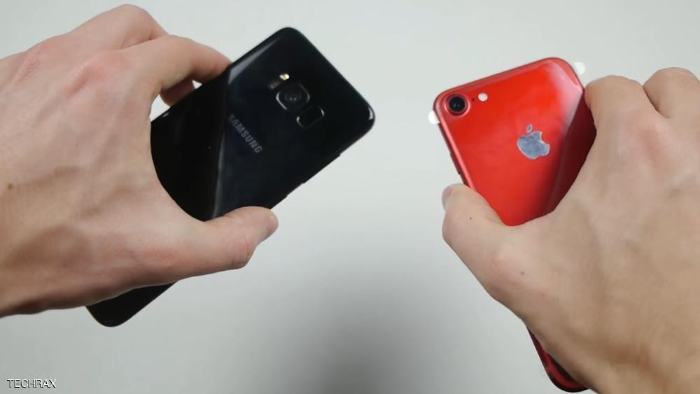 أجرت قناة "TechRax" على يوتيوب اختبار السقوط على هاتفي سامسونغ "غالاكسي إس 8" وهاتف شركة أبل الأميركية "آيفون 7"، ومالت كفة الاختبار لصالح هاتف الشركة الكورية الجنوبية.