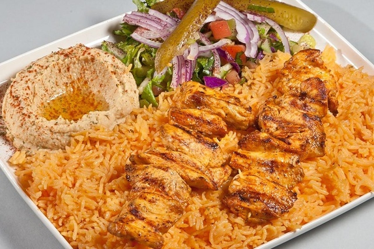 يُرص قطع الشيش طاووق على الأرز ويٌقدم ساخناً مع السلطة الخضراء أو حسب الرغبة.