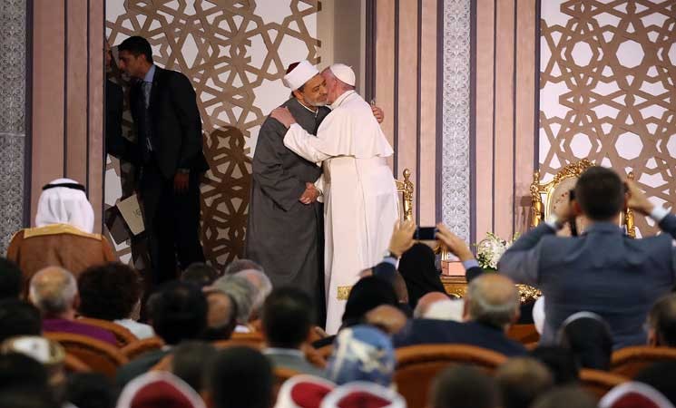 وقال في أول كلمة له خلال زيارته إلى القاهرة، "لنكرر معا من هذه الأرض، أرض اللقاء بين السماء والأرض وأرض العهود بين البشر وبين المؤمنين، لنكرر (لا) قوية وواضحة لأي شكل من أشكال العنف والثأر والكراهية يرتكب باسم الدين أو باسم الله".