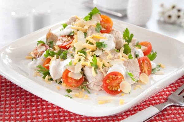6. 6. استعملى الدجاج الفائض لديكي سواء المسلوق او المشوى , بصنع طبق مميز من سلطه الدجاج بالمايونيز.