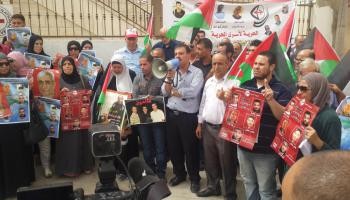 ورفع المشاركون في الاعتصام، الأعلام الفلسطينية، وصور الأسرى، ولافتات تحمّل حكومة الاحتلال المسؤولية كاملة عن حياتهم.