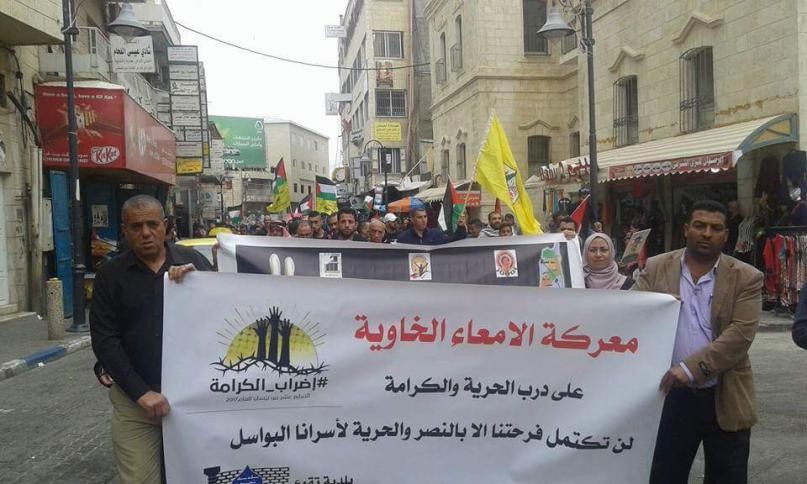 نظم مساء اليوم الأحد، عشرات المواطنين في بيت لحم مسيرة مشاعل تضامنا مع الأسرى المضربين عن الطعام منذ 35 يوما.