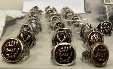 وتمت مصادرة المئات من الخواتم التي تحمل شعار الدولة الاسلامية "داعش" في مطار بن غوريون، كانت في طريقها الى رام الله.