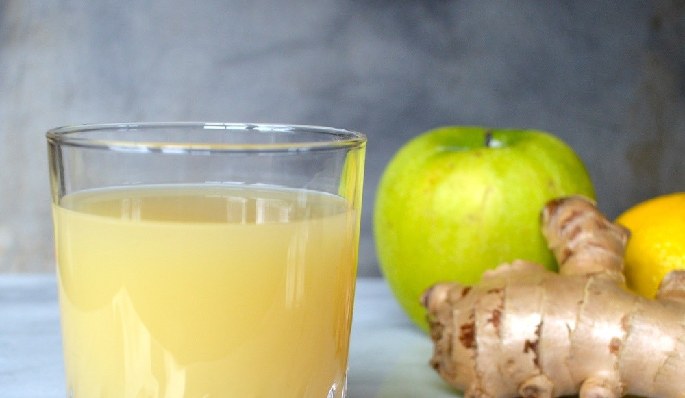 اغسلي التفاح جيدًا ثم قطعيه مكعبات صغيرة، قطعي الليمون إلى مكعبات صغيرة أيضا. ويقشر الزنجبيل ثم يطحن جيدًا