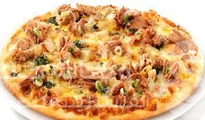 ٣٩٠ غرام تونا، ما يعادل علبتين ١٠٠ غرام جبن موزاريلا مبشورة ١ بصلة، مفرومة ١ طماطم مفرومة١ فلفل رومي، مفرومة ١⁄٤ كوب زيتون أسود شرائح ٢ فص ثوم مهروس ١⁄٤ كوب كاتشاب ١⁄٤ ملعقة صغيره ملح ١⁄٤ ملعقة صغيره فلفل أسود ١ ملعقة كبيرة شطة، سائلة لتحضير العجينة٤ كوب دقيق ١ كوب حليب سائل ١⁄٢ كوب زيت زيتون ١ ملعقة كبيرة خميرة فورية ١ ملعقة صغيره سكر رشة ملح