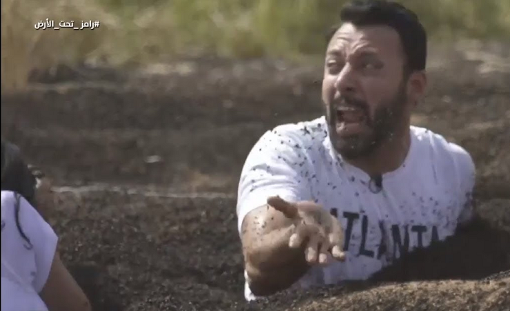 قام الفنان المصري أحمد فهمي بإلقاء رامز جلال أرضاً بعد وقوعه ضحية في برنامج "رامز تحت الأرض"، إثر اكتشافه حقيقة "المقلب".