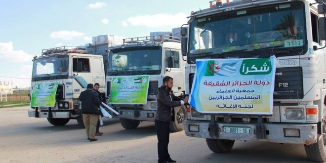 وقال القيادي في جمعية العلماء المسلمين الجزائريين تهامي مجوري، في تصريح صحفي اليوم" إن" قافلة المساعدات الإنسانية لفائدة إخواننا في قطاع غزة ستنطلق عبر باخرة من ميناء الجزائر العاصمة نحو ميناء العريش المصري قبل النقل برًا عبر معبر رفح نحو القطاع″.