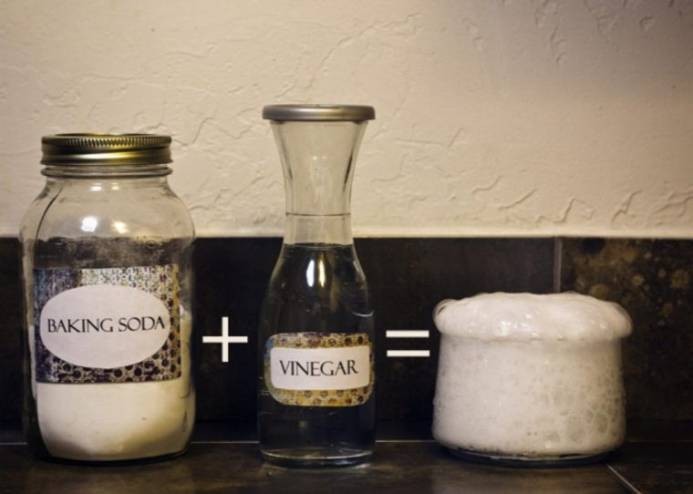 - إمزجوا كوباً من الخل الأبيض مع ملعقتي طعام من بيكربونات الصودا.