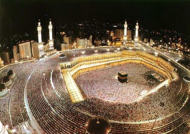 لبيك اللهم لبيك، لبيك لا شريك لك لبيك, إن الحمد والنعمة لك والملك لا شريك لك.