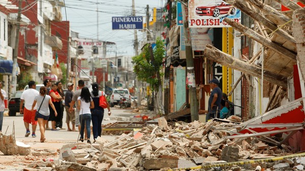 والزلزال الذي وقع مساء الخميس وبلغت شدته 8.1 درجة قبالة الساحل الجنوبي أقوى من زلزال مدمر وقع عام 1985 وسوى مناطق من مكسيكو سيتي بالأرض وأدى إلى مقتل الآلاف.