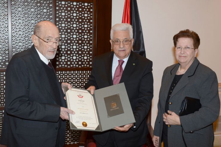 وكما كان قد منح الرئيس محمود عباس، في ديسمبر 2012 حنا ناصر وسام الاستحقاق والتميز.
