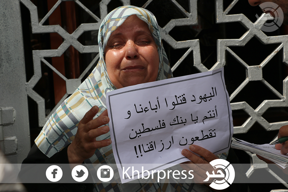 بالصور : اعتصام امام بنك فلسطين مطالبة باعادة الحوالات المالية لاصحابها