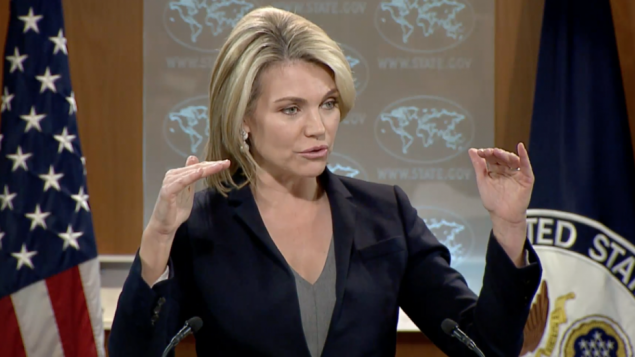 وقالت المتحدثة باسم وزارة الخارجية هيذر نويرت للصحافيين في واشنطن، فجر اليوم الجمعة "نرحب بالجهد" الذي تبذله "السلطة الفلسطينية لتولي المسؤوليات بالكامل في غزة".