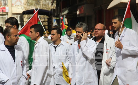 أكد مجلس نقابة الاطباء وقف العمل ابتداء من اليوم 9/6/2015 في جميع مرافق وزارة الصحة بما فيها المستشفيات والرعاية الاولية الى حين التراجع عن اية قرارات تم اتخاذها بحق أطباء فلسطينيين بعيدا عن الحكم القضائي القاطع.