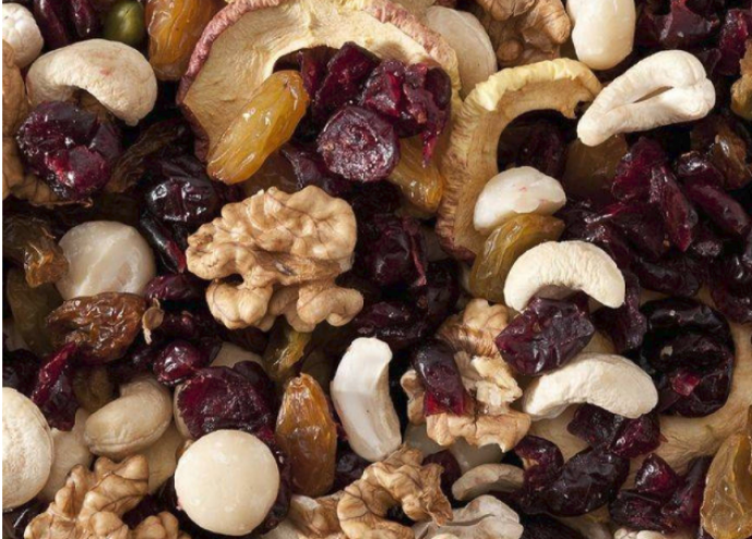- الفواكه المُجففة: تحتوي على نسبة السكر والسعرات الحراريّة الموجودة في الفواكه الطبيعيّة، إلّا أنّه قد يكون لها دور فعّال عندَ اتباع الأنظمة الغذائيّة لخسارة الوزن، فهي تحتوي على نسبة عالية من الألياف، ممّا يقي من إصابة الشخص بالإمساك الذي قد يؤدّي لصعوبة خسارة الوزن.