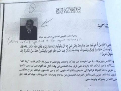 وقال الموقع" إن الرسالة عُثر عليها بحوزة محامية من القدس تم اعتقالها".