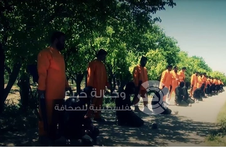 بث "جيش الإسلام" إصداره المرئي المرتقب منذ أكثر من شهر، الذي يظهر إعدام 18 من تنظيم الدولة في الغوطة الشرقية، أحدهم سعودي الجنسية، ويدعى أنس اليوسفي، والآخر كويتي، ويدعى فهد العنزي، أما البقية فهم سوريون.
