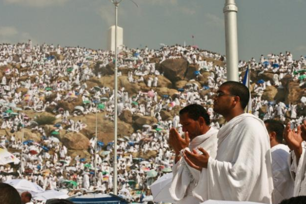 مع شروق شمس اليوم التاسع من ذي الحجة يخرج الحجاج من منى متوجهين نحو عرفة لآداء هذا النسك، ويُفسد الحج لمن لم يقف داخل حدود عرفة المعروفة، ووقت الوقوف بعرفة ممتدٌ من زوال شمس يوم عرفة إلى طلوع فجر اليوم الثاني وهو أول أيام عيد الأضحى المبارك.