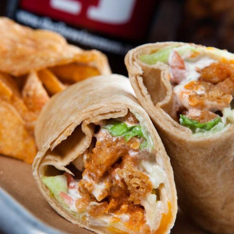 4. وزعي الدجاج المطهو على خبز التورتيلا ثم الخس والكرفس وصلصة الجبنة الزرقاء.