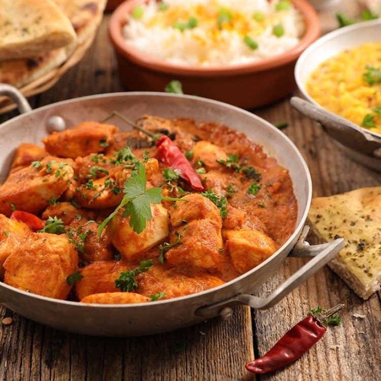 2. تُضاف بودرة الكاري وصلصته و"التاندوري ماسالا" والـ"جرام ماسالا" وصلصة البندورة إلى المكوِّنات في المقلاة، مع التقليب حتَّى عدم ملاحظة أي تكتل في صلصة البندورة.