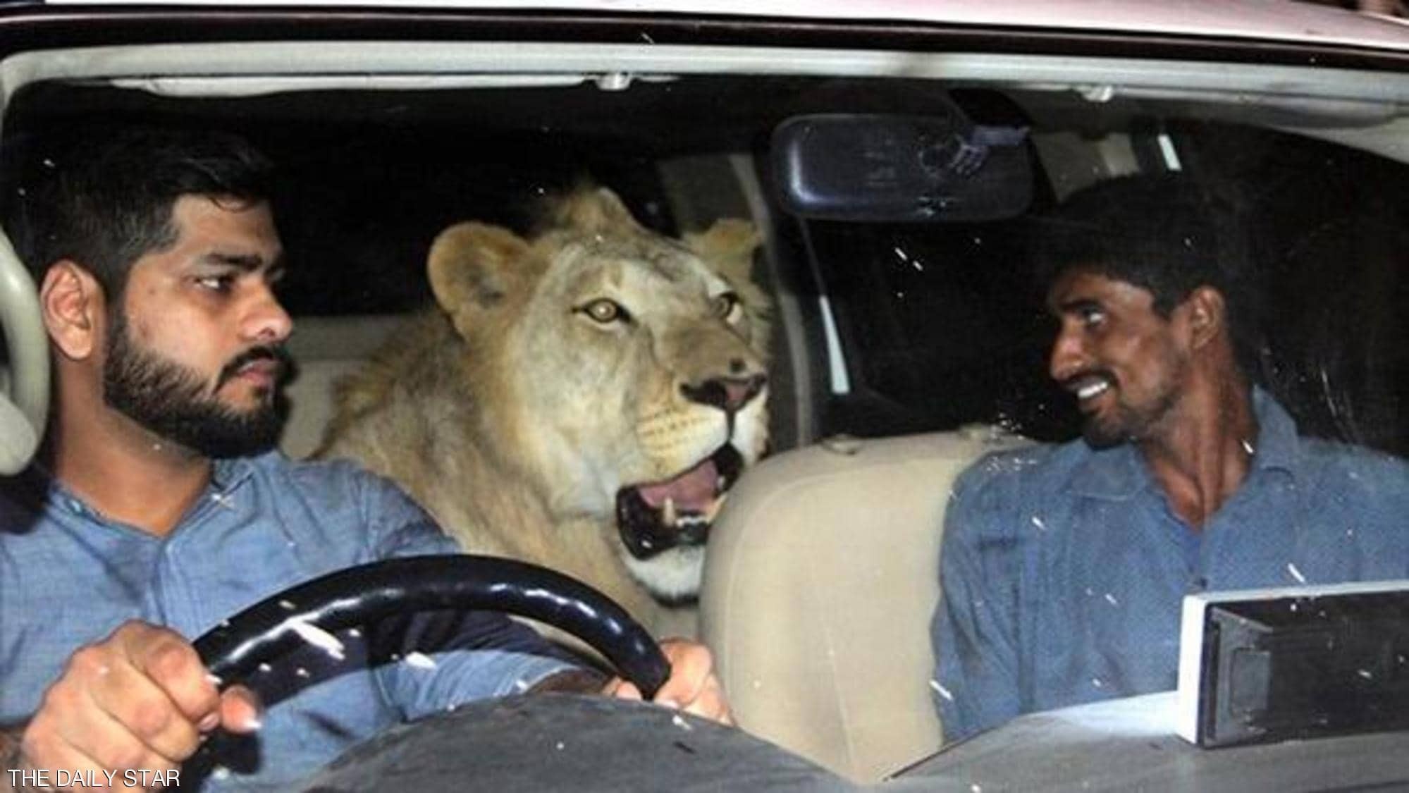 أثناء قيادتهم سياراتهم في شوارع مدينة كراتشي الباكستانية، شد انتباه السائقين زئير أسد عوضا عن صوت بوق السيارة، وفقا لما ذكرته صحيفة ذي صن البريطانية.