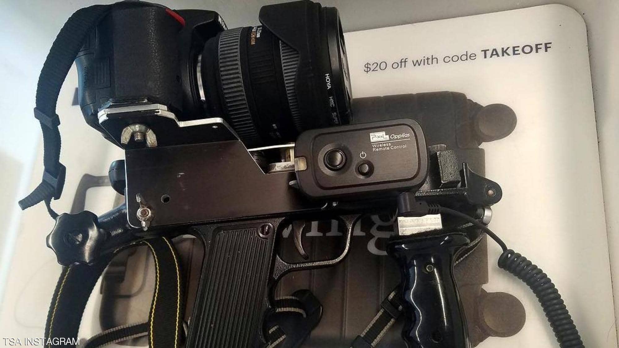 بندقية رشاش نصف آلية وقنابل يدوية على شكل زجاجة عطر، من بين العديد من الأسلحة التي حاول بعض المسافرين جوا تهريبها عبر المطارات الأميركية.