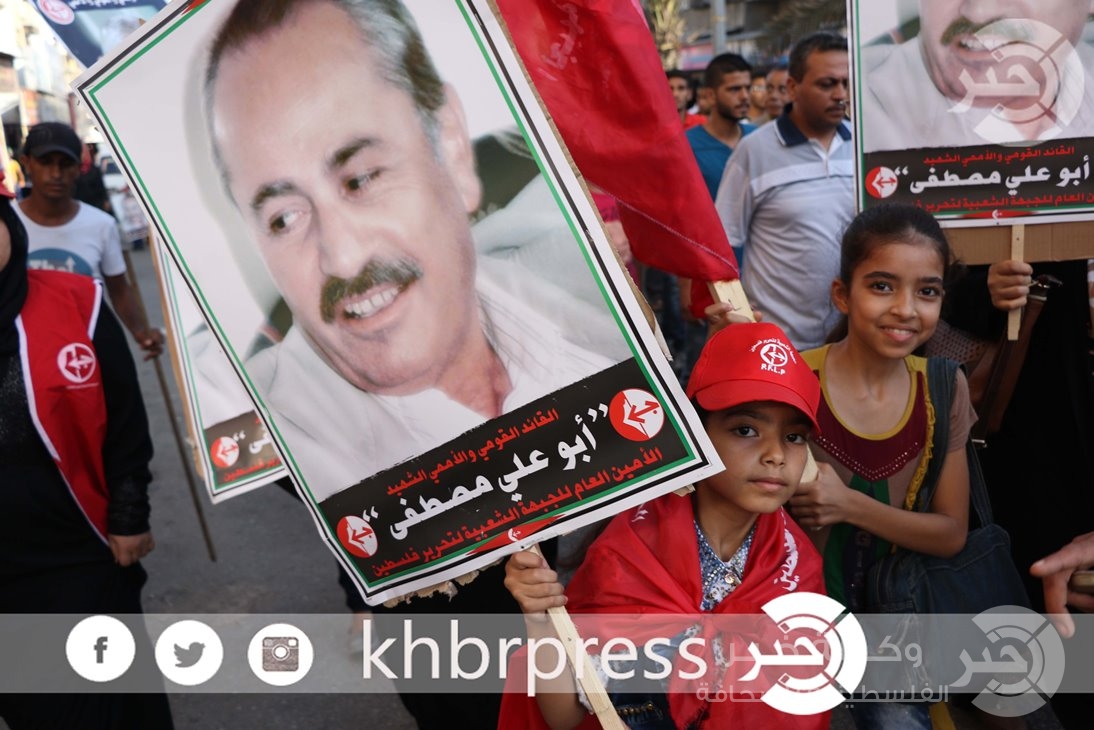نظمت الجبهة الشعبية لتحرير فلسطين اليوم مسيرة بعنوان (للوطن نقاوم علي الثوابت لا نساوم )وعلى شرف الذكرى السنوية الرابعة عشر لاستشهاد الرفيق الأمين العام للجبهة الشعبية لتحرير فلسطين "أبو علي مصطفي".