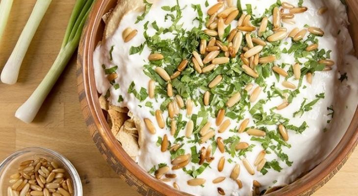 6. انثري الصنوبر والبقدونس على الفتة وقدميها ساخنة.