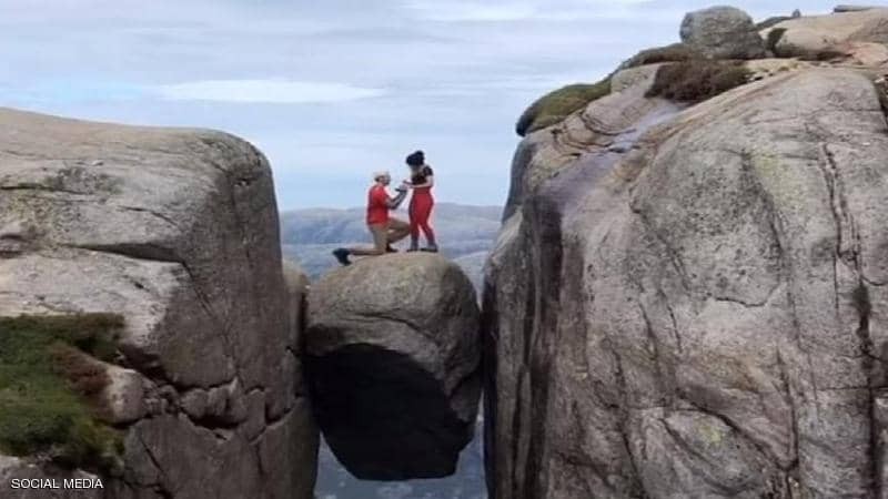 ووفق الموقع اقترح كريستيان ريتشاردز الزواج من بيكس مورلي من على ارتفاع 915 مترا، على صخرة مثبتة بين منحدرين صخريين في منطقة نرويجية تدعى "كجيراكبولتن".