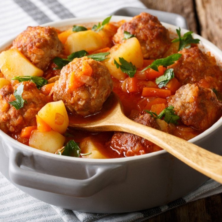 6. أضيفي كرات اللحم المحمرة واتركي المزيج لمدة 10 دقائق إضافية حتى تنضج تماماً مع البطاطس والجزر.