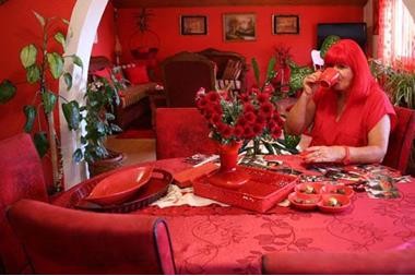 وقامت زوريكا ريبيرنيك (67 عاما) بإحاطة نفسها باللون الأحمر، منذ بلغت 18 عاما، حيث تعيش في منزل أحمر مليء بالأثاث الأحمر، كما تنام على ملاءات السرير الحمراء، وجميع الملابس في خزانة ملابسها حمراء.