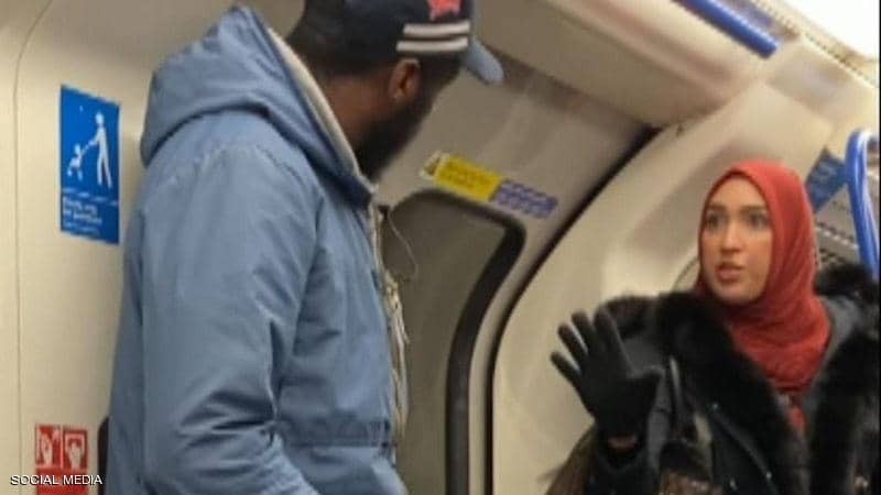 لكن مخرجاً يدعى كريس أتكينز التقط الواقعة بهاتفه، وتحدث إلى "سكاي نيوز" قائلاً: "إن 4 ركاب من بينهم امرأة مسلمة محجبة تصدوا للرجل المسيء"، واصفاً الأخيرة بأنها "شجاعة بشكل لا يصدق".