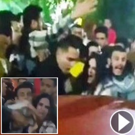 ويظهر الفيديو، الذي تم تداوله على نطاق واسع على موقع "تويتر"، محاولة عشرات الشبان التحرش بالفتاة، فيما يحاول البعض حمايتها وإنقاذها وسط صراخها وبكائها.