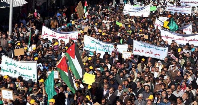 ففي العاصمة الأردنية (عمان) انطلقت مسيرات حاشدة من أمام الجامع الحسيني وسط البلد بعد صلاة الجمعة مسيرة نصرة للمسجد الأقصى، شاركت فيها حشود من المواطنين.