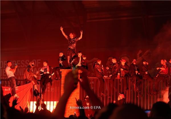وقامت الجماهير بإطلاق الألعاب النارية، خارج ملعب أنفيلد، احتفالا بحصول فريقها على لقب البريميرليج.