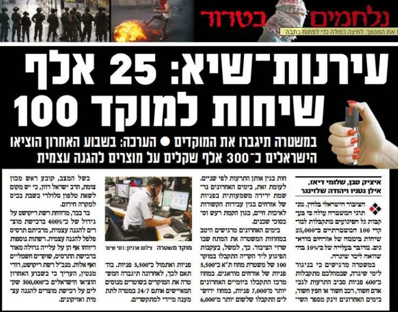 وذكرت الصحيفة العبرية أن التقديرات تشير إلى أن الإسرائيليين أنفقوا نحو 300 ألف شيكل خلال الأسبوع المنصرم على شراء وسائل للدفاع عن النفس مثل بخاخات رش الغاز والفلفل والعصي الكهربائية.