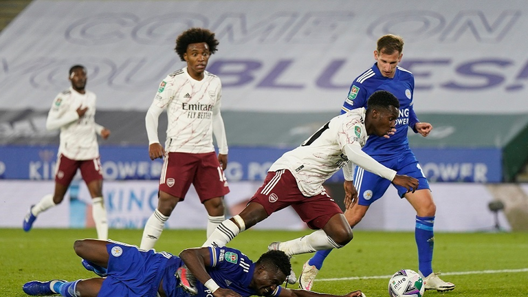 وعلى ملعب "كينغ باور ستاديوم" في ليستر، انتظر أرسنال النيران الصديقة لافتتاح التسجيل عبر مدافع ليستر سيتي، كريستيان فوش، الذي سجل خطأ في مرمى فريقه في الدقيقة 57، قبل أن يضيف المهاجم إدوارد نكيتيا الهدف الثاني، في الدقيقة 90.