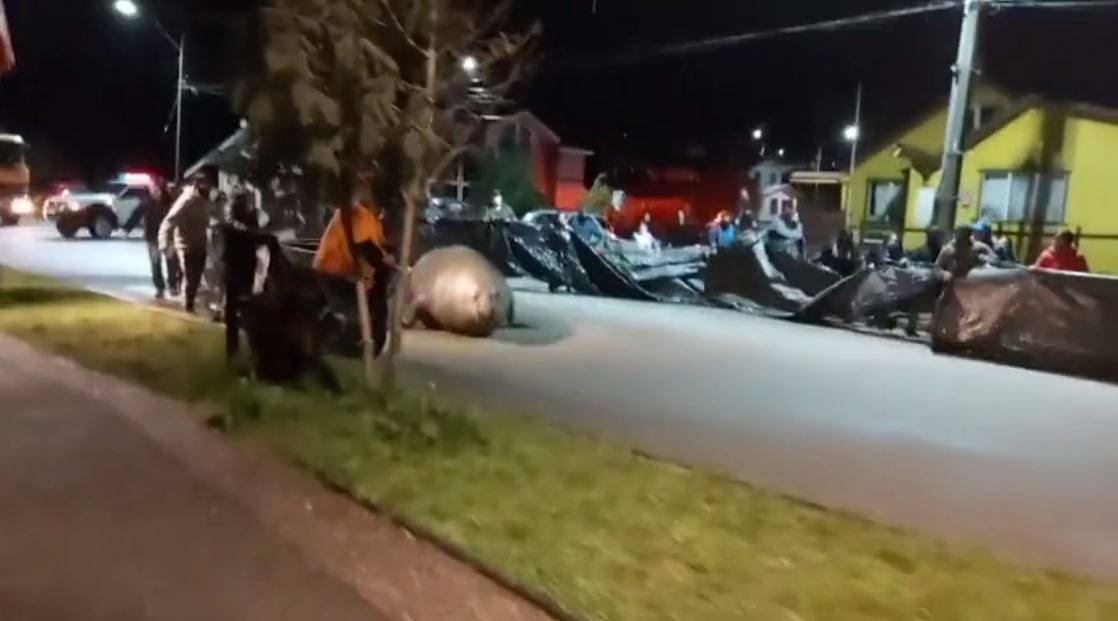 سجل أحد سكان ميناء بورتو سيسنس التشيلي، لقطات مثيرة تظهر حيوان الفيل البحري وهو يتجول في شوارع المدينة في ساعات الليل.