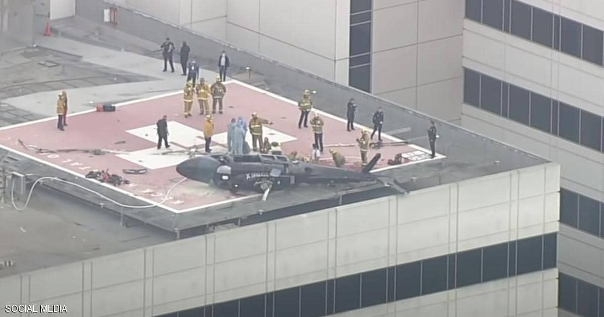 وأظهر مقطع فيديو رجال إطفاء وإنقاذ عقب سقوط المروحية على سطح مستشفى "Keckeck" في بويل هايتس، إلى جانب فريق يحمل قلبا متبرعا به.