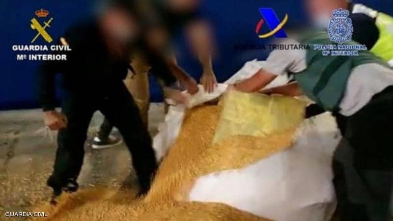 وصادرت الشرطة كمية حشيش تزن طنين كانت مخبأة في 66 حزمة كانت العصابة تعتزم تهريبها إلى فالنسيا في إسبانيا.