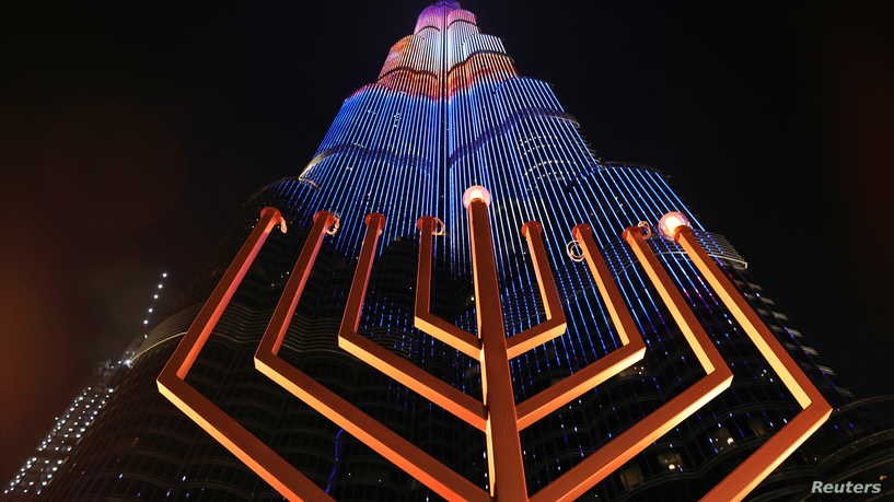 كما أضاء برج خليفة، في دبي، احتفالًا بأول ليلة من "حانوكا" في الإمارات العربية المتحدة، في حدث هو الأول من نوعه منذ توقيع اتفاق إبراهيم.