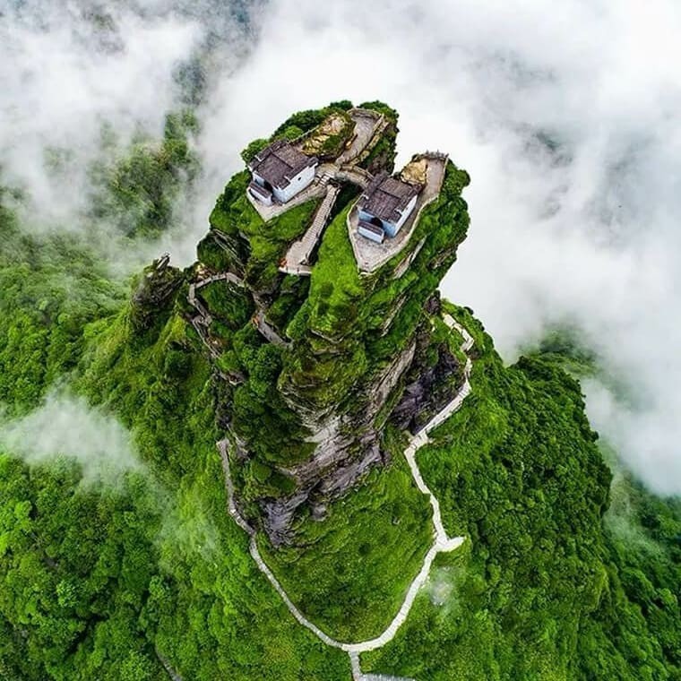أصبح جبل فانجينج، فى سلسلة جبال وولينج بجنوب غرب الصين، موطنا لواحد من أكثر المعالم السياحية فى العالم الآخر على هذا الكوكب، وهو معبدان صغيران مبنيان فوق قمة صخرية، متصلين بجسر مقوس، يطلان على جنة طبيعية مذهلة، حيث يقع المعبدان البوذيان الصغيران على قمة البرج الصخرى الطبيعى المعروف باسم Red Clouds Golden Peak، ولهما تاريخ يعود إلى أكثر من 500 عام، إلى عهد أسرة مينج.