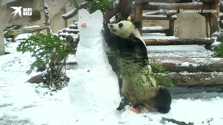 شاهدوا: دب باندا يهاجم رجلا ثلجيا في حديقة الحيوان بموسكو