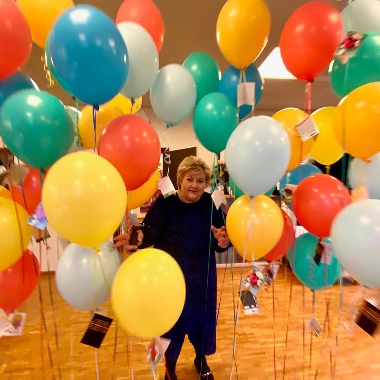 صور وفيديو: رئيسة وزراء النرويج تحتفل بعيد ميلادها الـ60 وسط "البلالين"