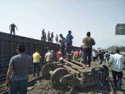أصيب عدد من الأشخاص اليوم الأحد، في حادثة انقلاب قطار قادم من المنصورة بعد خروجه عن السكة الحديدية.
