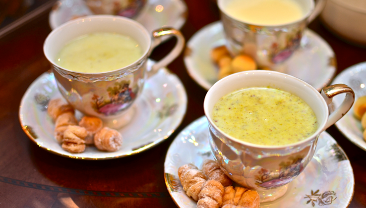 - يسكب الحليب في أكواب ويقدم ساخنا.