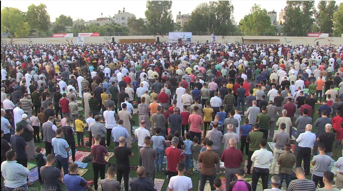 وفي قطاع غزّة أدى الفلسطينيين شعائر صلاة عيد الأضحى المبارك في المساجد والساحات العامة، وسط إجواء إيمانية وبهجة عمَّت كافة المناطق الفلسطينية.