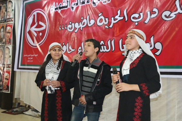 من جانبها ألقت الرفيقة ريهام شقيقة الشهيد المقاتل محمود أسامة عباس كلمة ذوي الشهداء مؤكدة أن يوم الشهيد الجبهاوي جاء ليجمع ذوي الشهداء ليؤكدوا سوياً على تمسكهم الراسخ والثابت بالقضية والمبادئ التي رحل من أجلها أبنائهم وفلذات أكبادهم حتى تحقيق أهدافنا بالعودة وتقرير المصير وإقامة الدولة الفلسطينية المستقلة وعاصمتها القدس.