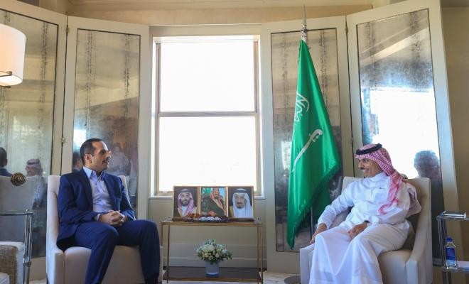 التقى ليلة أمس الجمعة، وزير الخارجية القطري الشيخ محمد بن عبد الرحمن آل ثاني، بنظيره السعودي الأمير فيصل بن فرحان، وذلك على هامش أعمال الدورة الـ76 للجمعية العامة للأمم المتحدة.